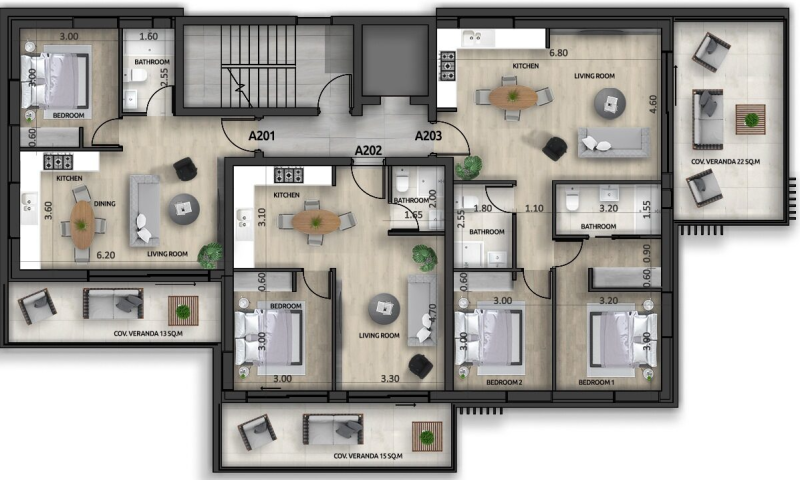 1 Bed / 1 Bath / 50 m² Covered Area / 15 m² Covered Verandas / Newly Built / Title Deed: Available.